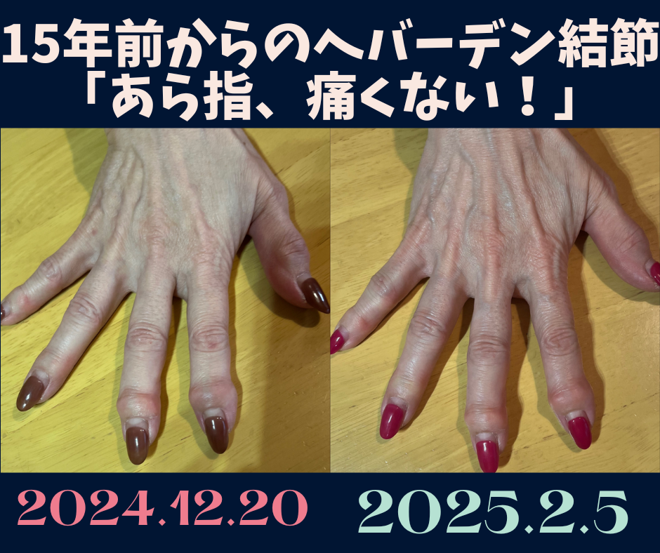 ◆20年来のヘバーデン結節ブシャール結節、わずか3か月で、「指は全然気にならなくなった!」