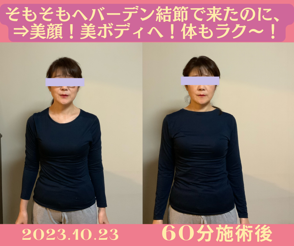 【ヘバーデン結節ブシャール結節、原因と治し方!みなさま改善!】実例多数!長年の悩みから解放されたお客さまの変化で一目瞭然!