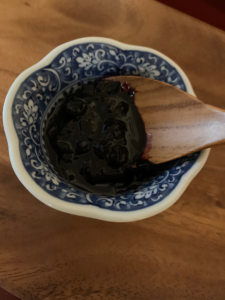 できたジャムは、雰囲気は、色といいテクスチャーといい、ブルーベリーそっくり。