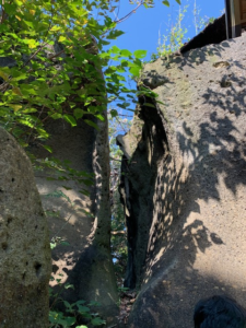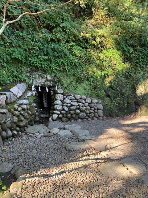境内にある洞穴。神様がナタで切った、という伝承からの名前のよう。