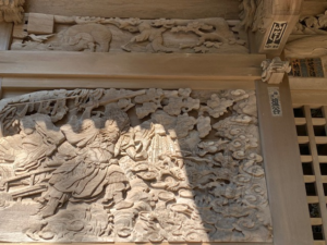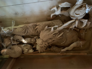 こちらは、拝殿正面にあった、見事な龍。残念なことに台風で落ちてしまい、修復されないままになっているそうです。復元していただきたいですね。