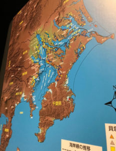 縄文時代の海岸線。丸木舟での移動が多かったのでしょうね。こんなに海が入り組んでいた!