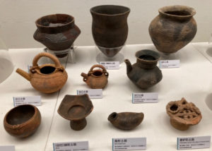 都内、多摩ニュータウンや雪谷、奥多摩などで発掘された土器がたくさん陳列されていました。
