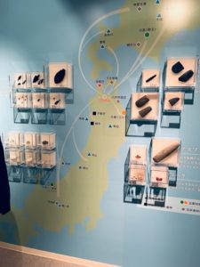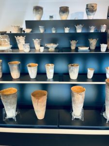 土器の陳列。下が古くて上に行くほど新しくなるそう。デザインの変遷。