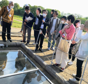 館長さんのご説明伺っている私たちが立っているところは、実際縄文時代に整地された道路だったのです。
