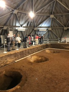 そしてジャ~ン!”大型掘立柱”(なんだか寂しいネーミング)。用途はわかっていません。多分屋根があったと考えられています。なんでも当時の選挙前後の知事さんの意向で屋根なし展示となってしまったとか。