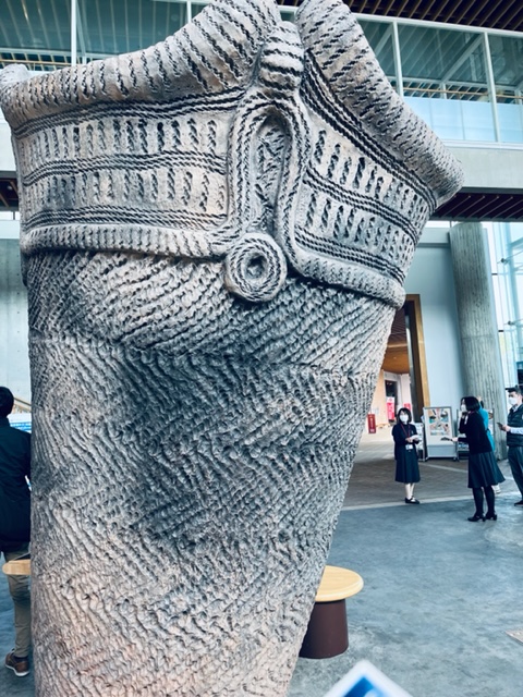 こちらが実際の”棺転用土器”。使っていた土器の下部にわざわざ穴をあけて、そうして棺として使ったそうです。