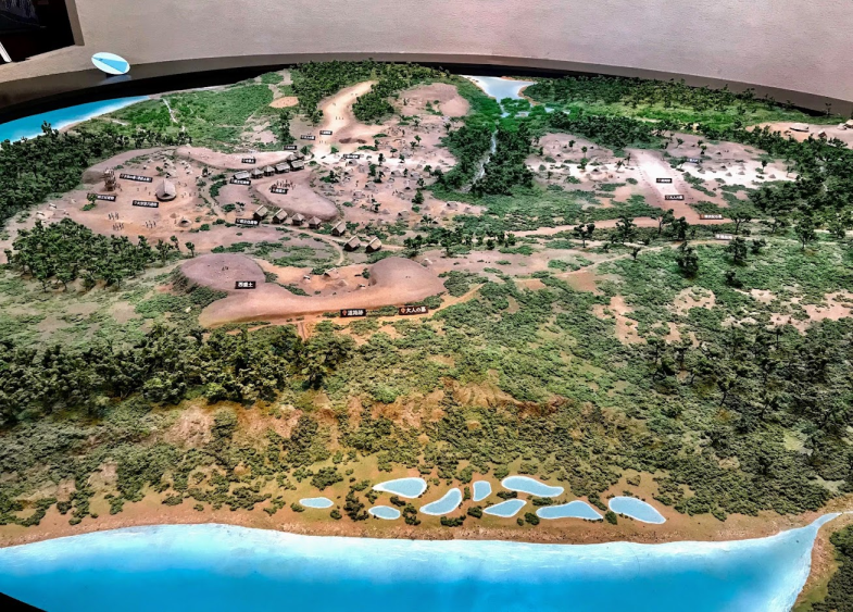 模型。広大な土地に住居や墓所、集会所のような大きな建物など、もっと密集していたと考えられます。