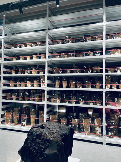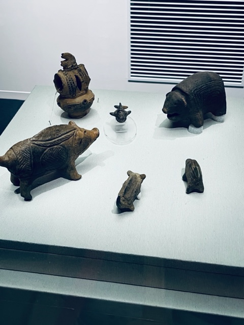 土器の陳列。下が古くて上に行くほど新しくなるそう。デザインの変遷。
