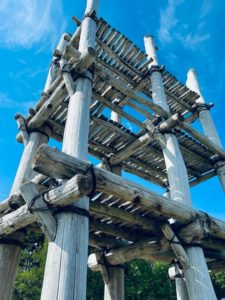 そしてジャ~ン!”大型掘立柱”(なんだか寂しいネーミング)。用途はわかっていません。多分屋根があったと考えられています。なんでも当時の選挙前後の知事さんの意向で屋根なし展示となってしまったとか。