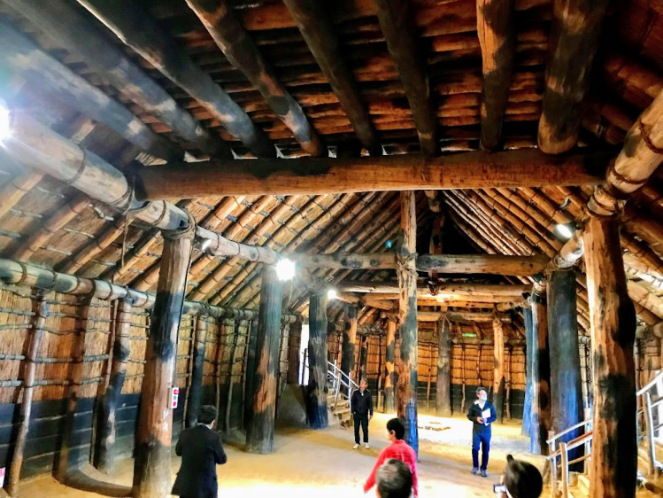 内部はこんなに広いのです。遺構から、ゼネコンなどと全体の設計を推測して構築しているそう。直径1メートルの栗の木の高さはどのくらいになるか、など。