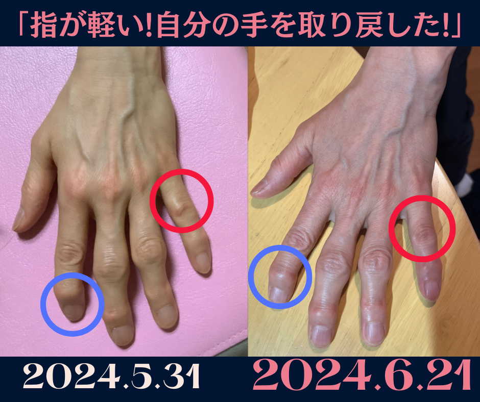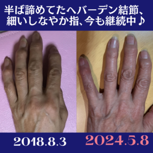 ヘバーデン結節、ブシャール結節で、20年来お困りでらしたというお客さま、4回の施術でこんな変化を!