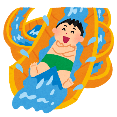 ですが(ちょうどいいイラスト見当たらずコレですが)、曲がりくねった滑り台ですと、湾曲部分に子どもが溜まってしまうこと、ありますよね。