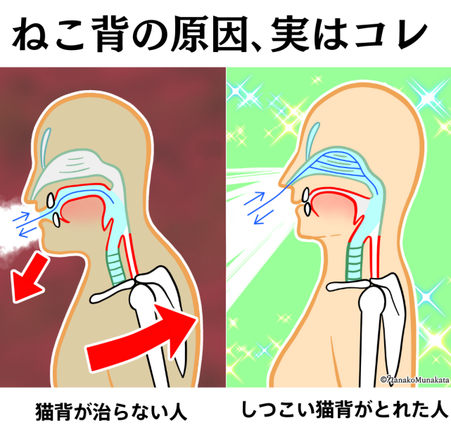 ねこ背でいると、鼻水たまっちゃう⇒鼻詰まっちゃう、と言えるかもです。