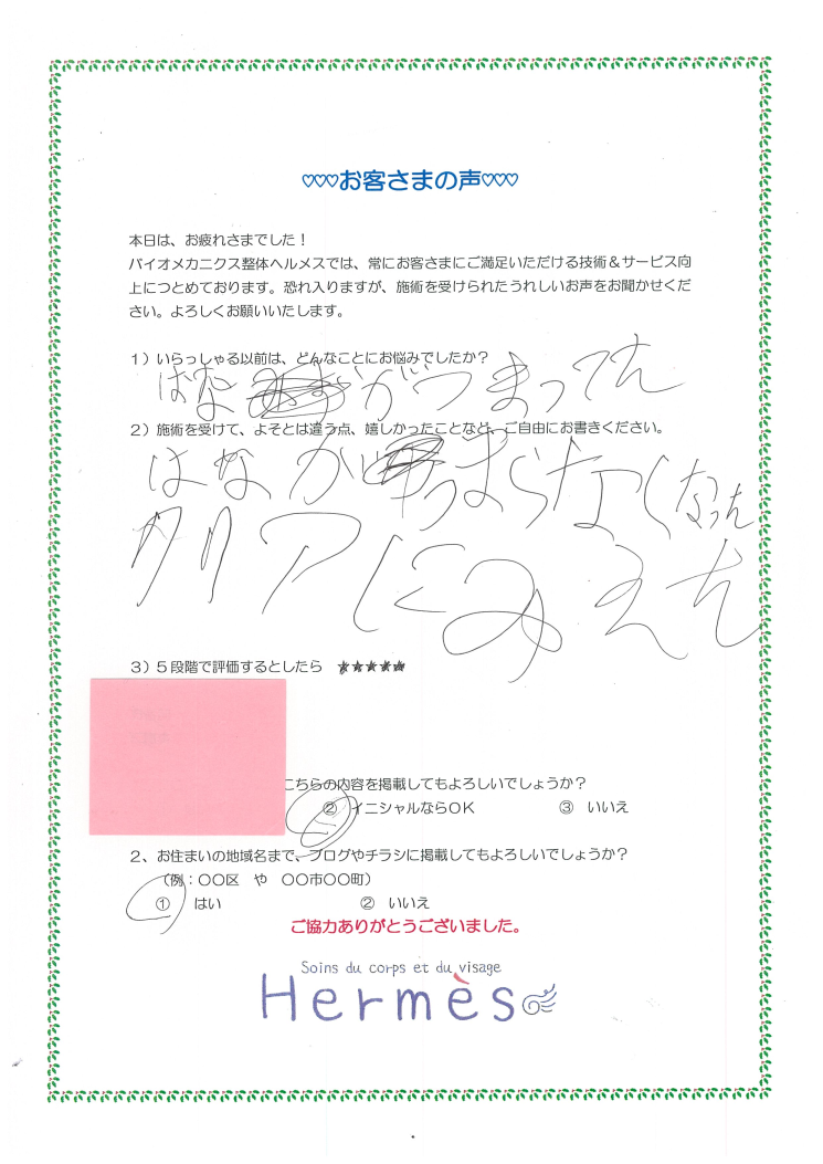 1)(お悩みは) はながつまってた