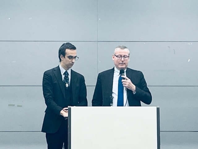 フランスから見えた政治学博士、ピエールイラール先生のご講演、ポールドラクビビエさんが通訳を。