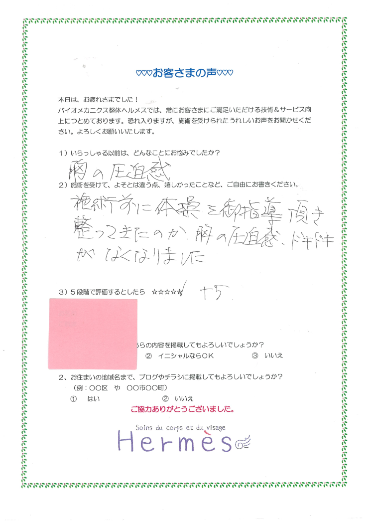 胸の圧迫感、なくなりました!