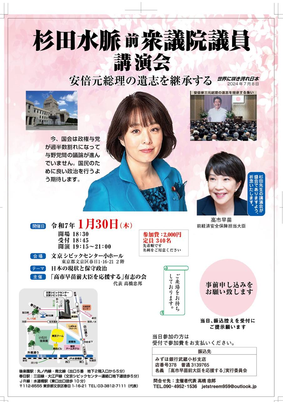 というわけで、杉田水脈さんのお話、ナマで聴いてみませんか?
