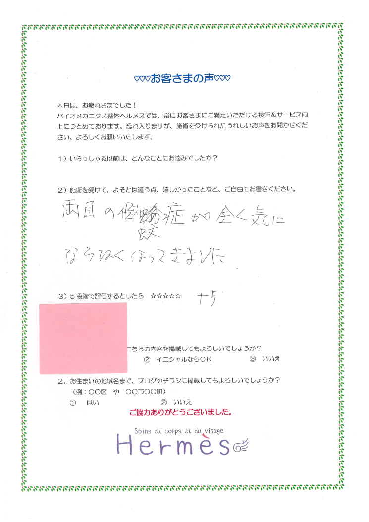 そしてこの日の施術後は、気にならない、そんな状態になられたそうです。