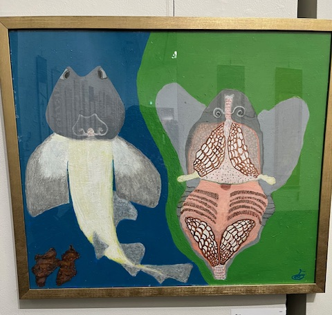 そうして、西原先生の今年の新作油彩画1点が、”ネコザメと進化の過程”、