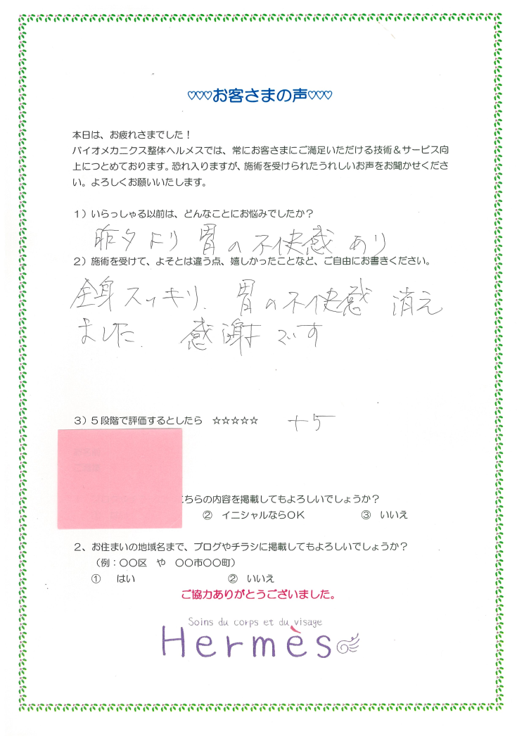 夕べから胃がむかつく、というお客さま、ご感想書いていただきました。