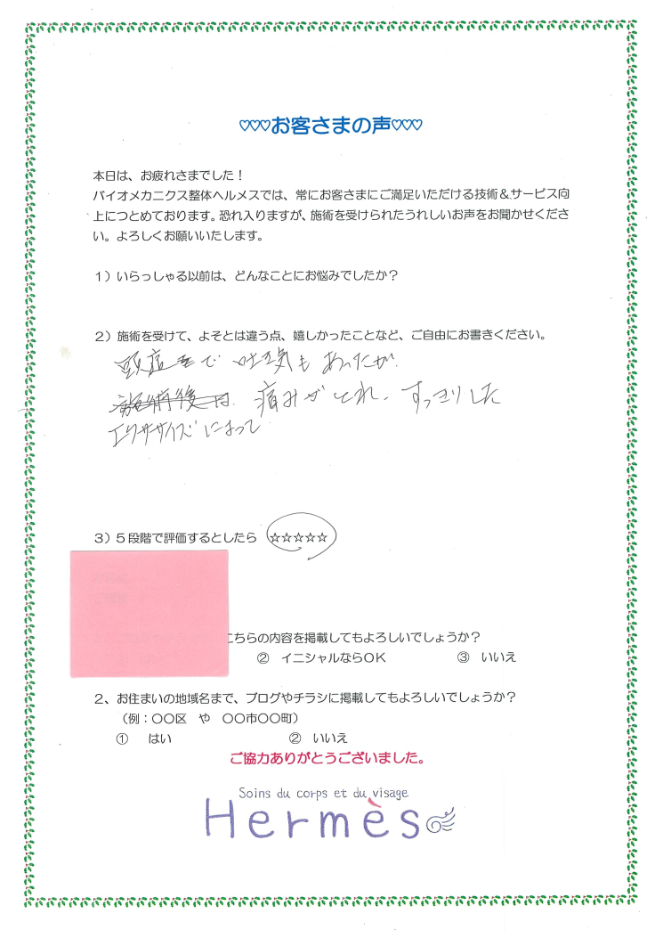 ”頭痛がして、吐き気もある”というお客さまでしたが、+エクササイズメニューを継続されてます。