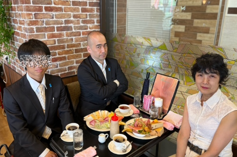 お約束の日時に、ある”祭典”があったということで、ランチではなく朝食をご一緒させていただきました(後輩の方も)。
