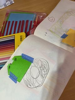 お客さま、小学生さまが、ママの施術中折り紙とイラストで、このイタリアンブレインロットのキャラクター数点を制作くださいました。