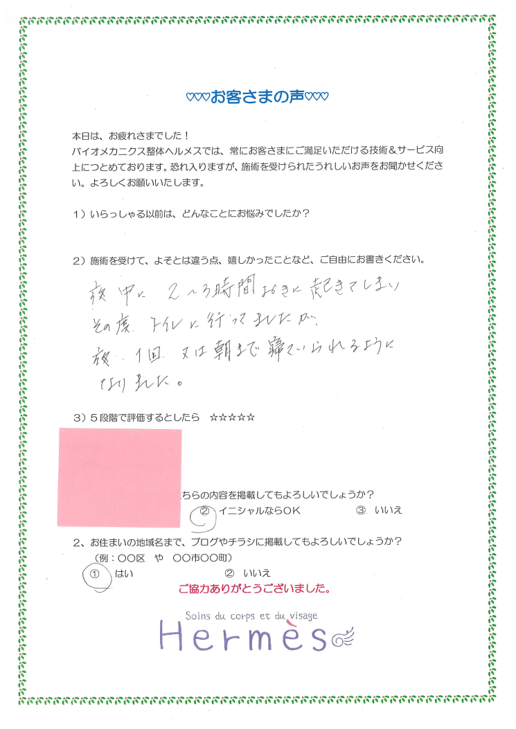 1度の施術で、それらラクになられたそうですが、睡眠の変化について、教えてくださいました。