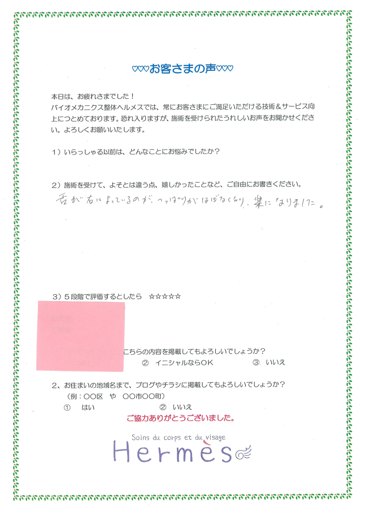 一度でラクになった!と喜んでいただけましたが、大先生でしたので、”ご感想”書いていただくのをお願いできなかったんです、当時の私。