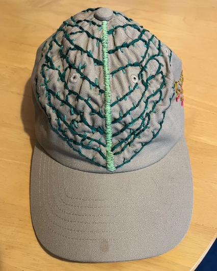 こたえ!お茶の葉(実物大)ですって!お友達がきれいに刺繍してくださったそうで、とってもスタイリッシュ。オンリーワンですね。