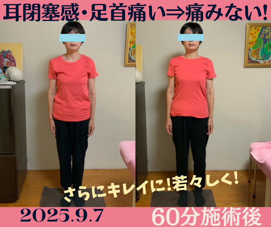 右側アフター60分施術後は、8頭身となられ、プロポーションよろしくって、随分印象違いますよね。