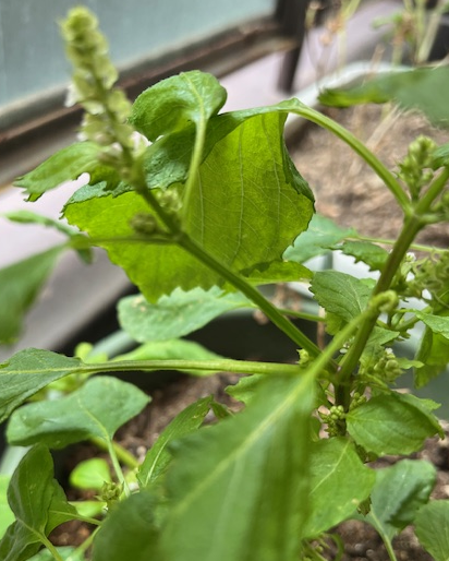 プランターに植えてます大葉ですが、ようやくお花を咲かせました。例年なら8月には見られるのに。