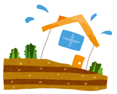 土壌が崩れたのか、傾いてしまった家です。