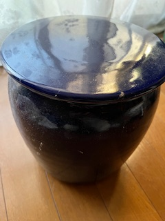 深いブルーの味噌つぼ、お気に入りです、蓋を開けてみますと!