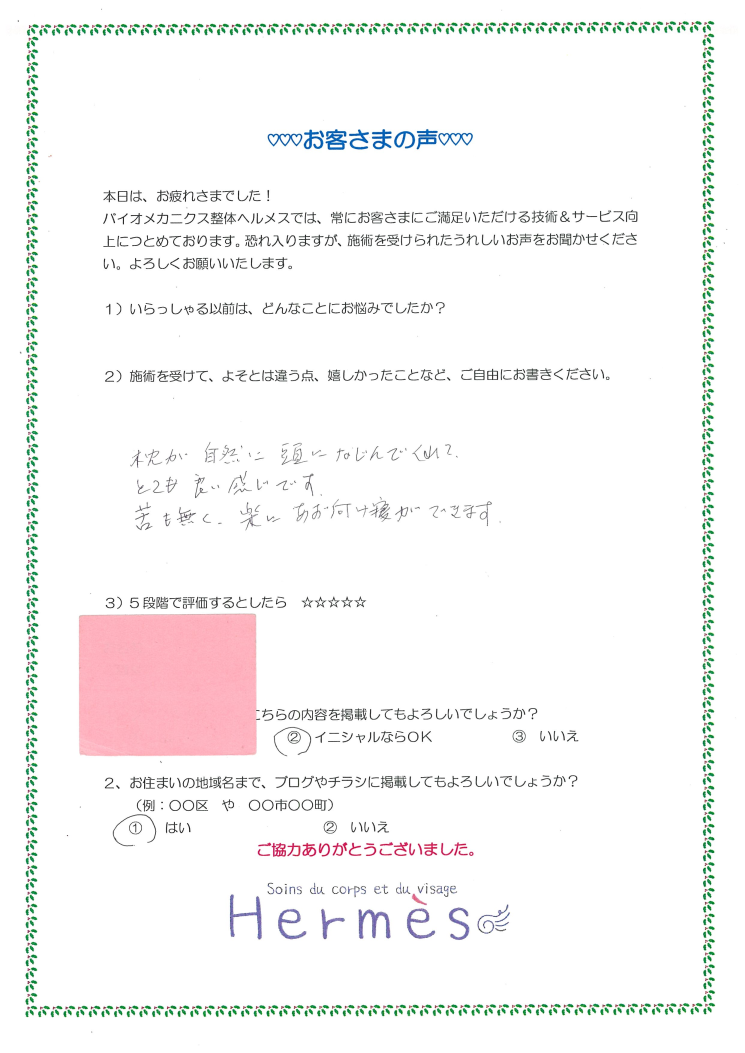 枕が、自然に頭になじんでくれて、とても良い感じです。