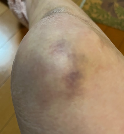 転倒1週間後のワタクシの右ヒザ(上から見た)になります。もう全く違和感ありません。