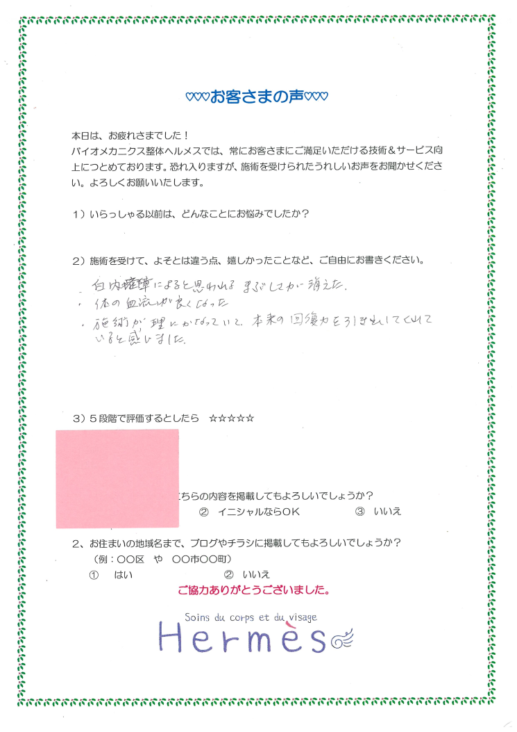 白内障まぶしさ消えた!バイオメカニクス整体ヘルメス