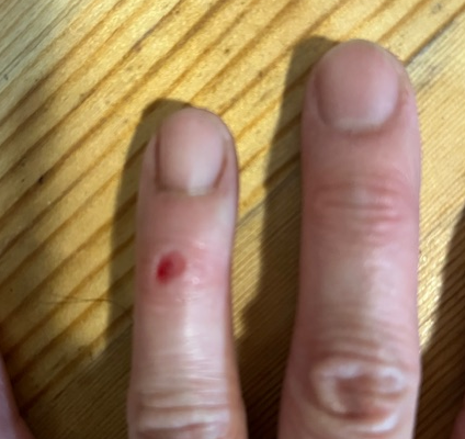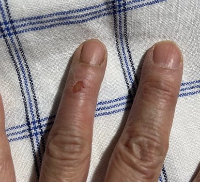 左薬指第一関節周囲を、包丁で刺してしまったんです。ちょっと傷が深かったようで、なかなか血が止まりません。