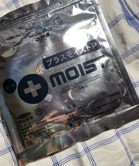 で、このプラスモイストをカットして、患部につけて、サージカルテープで固定して過ごしてましたら、