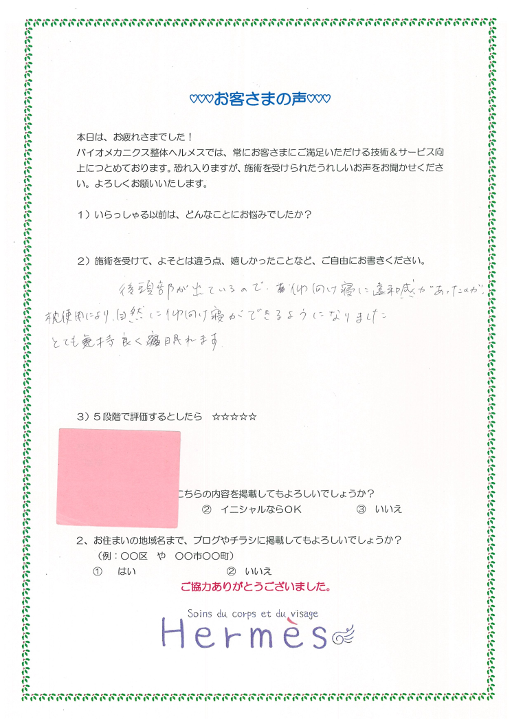 後頭部が出ているので、仰向け寝に違和感があったのが、枕使用により、自然に仰向け寝が出来るようになりました。