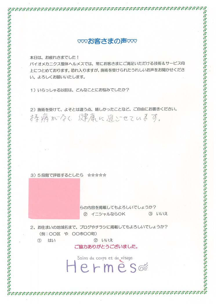 「持病なく、健康に過ごせてます」8年来のお客さま