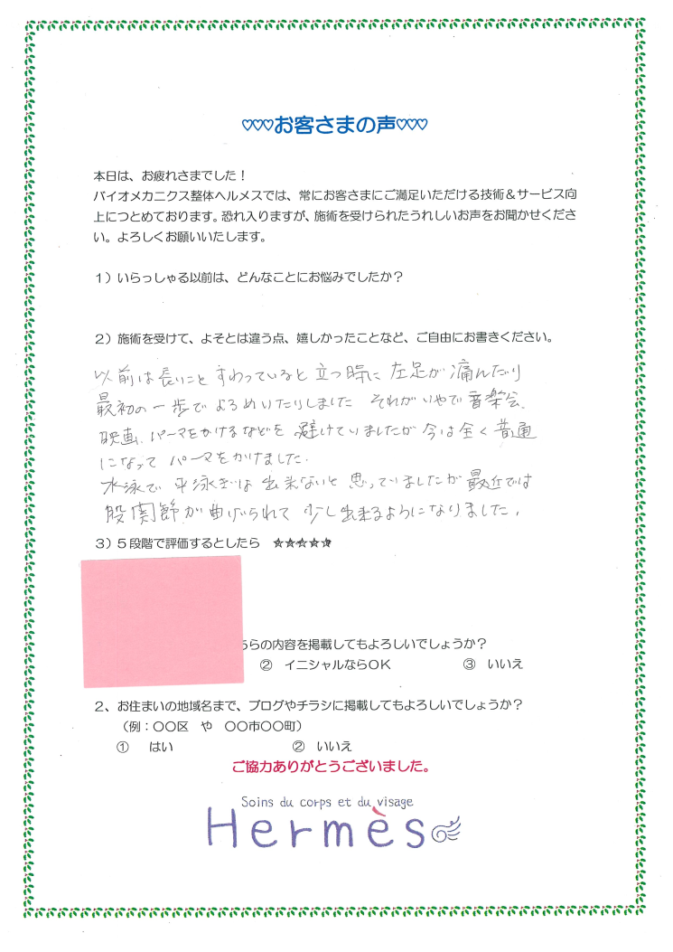 ご紹介でこちらに見えるようになられ、数か月で、股関節の痛み不調がなくなられ!