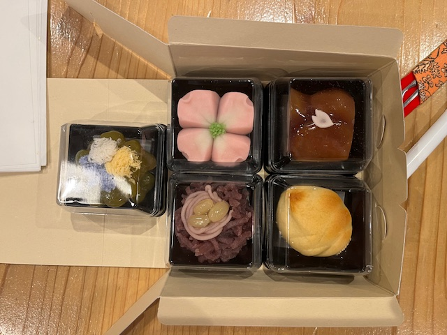 お抹茶といただきました。私のお菓子”巣ごもり”は、求肥入り、とっても美味でございました。