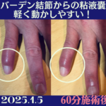 2025年1月6日 / 最終更新日時 : 2025年1月6日 宗像菜々子 手、腕の痛み、ヘバーデン結節 ヘバーデン結節!小指粘液嚢腫編、男性でございます ヘバーデン結節のお客さま、次々いらしてくださってます。 ”治らない”が改善へ!”諦めてた”アレコレがラクに!バイオメカニクス整体、宗像菜々子です。 じゃ~ん! こちら男性のお客さま。 小指が粘液嚢腫のため膨れ、ご自分で水 […]
